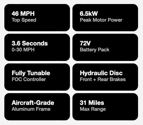 Dual Fit. The Mantis Mini R and Mini R17 are built for different rider heights while delivering the same thrill. Powered by a 72V battery and 6,000W PMSM motor, they launch from 0–18 MPH in 1.6 seconds and top out at 46 MPH. Parents and young pros can fine-tune power and speed with our app-enabled controller for total control. With aircraft-grade aluminum, hydraulic brakes, and adjustable suspension, the Mini R series delivers real performance with family-ready safety features.